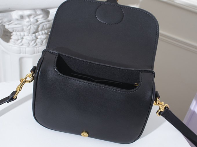 Strap: Removable and adjustable leather shoulder strap, allowing versatile wear as a shoulder, crossbody, or hand-held bag